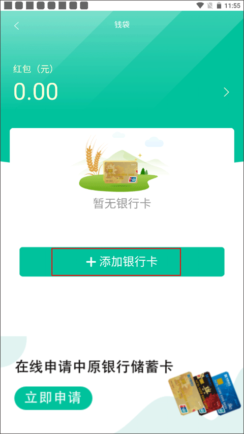 这时候只有一个按钮,点击“添加银行卡”。