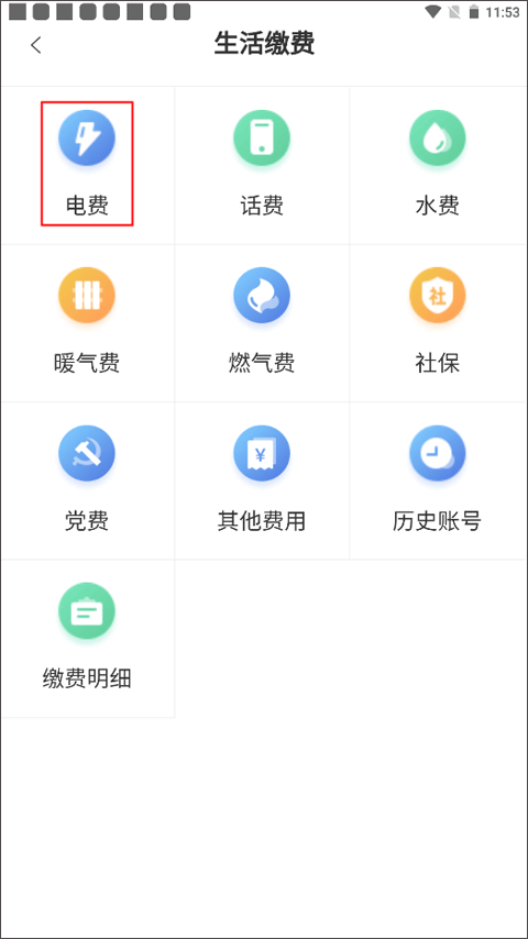 这里提供多种生活缴费项目,选择电费选项后,依照指引完成操作就能便捷地缴纳电费了。