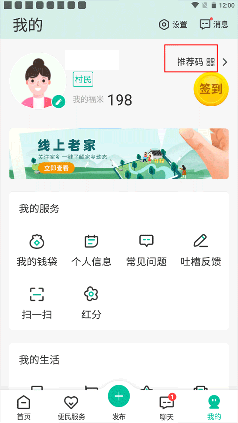 进入【我的】页面后,点击右上角的“推荐码”按钮。
