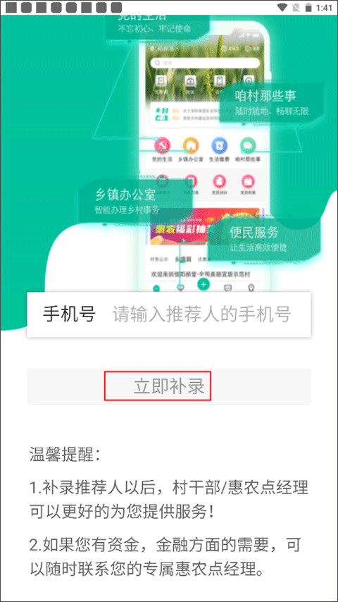 输入推荐者手机号,点击“立即补录”。