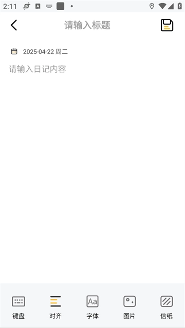 「文字排版」功能包含对齐方式、字体样式、字号大小、字体颜色以及粗体设置等多种选项,助你轻松打造心仪的日记排版风格。