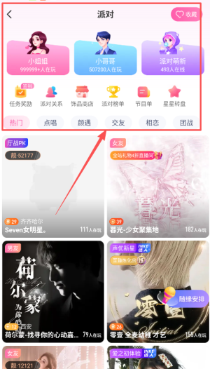 在线派对:涵盖团队竞技、社交互动、颜值评定、相亲联谊等多元派对玩法,全方位满足用户的多样化需求。
