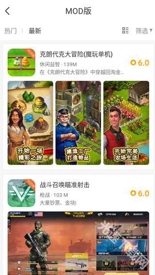 在首页,点击“mod版”,选择你要的游戏;
