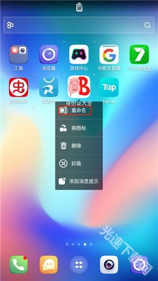 长按桌面图标或小插件会弹出操作菜单,让你能在桌面直接完成更改图标、重命名和卸载操作。