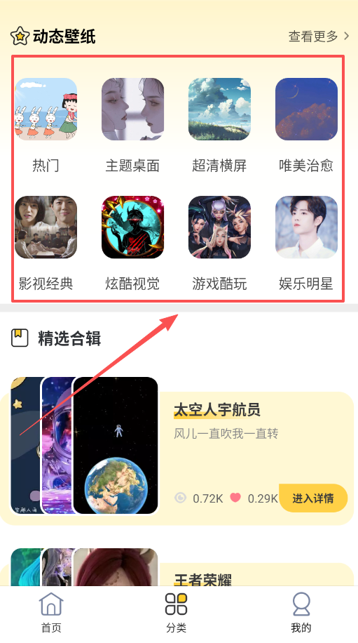 最后记得去分类页面的动态壁纸专区看看,那里有影视经典、游戏酷玩等多种分类,更换壁纸会特别方便。