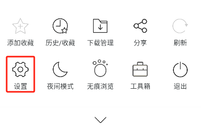 在弹出的窗口里点击“设置”选项,即可进入浏览器的设置界面。