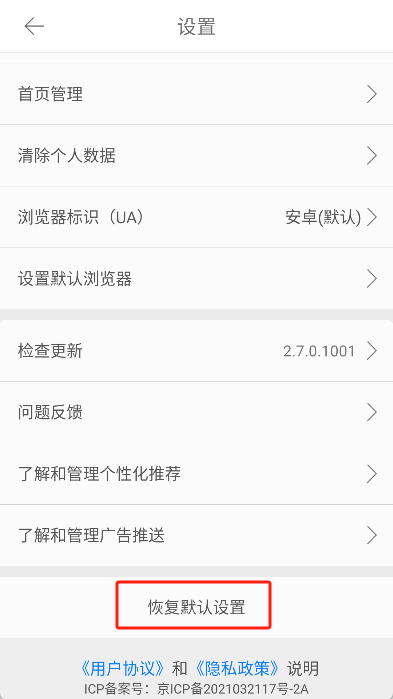 然后浏览器会自动恢复到它最初的默认设置,用户需要重新启动浏览器,这样更改才能生效。