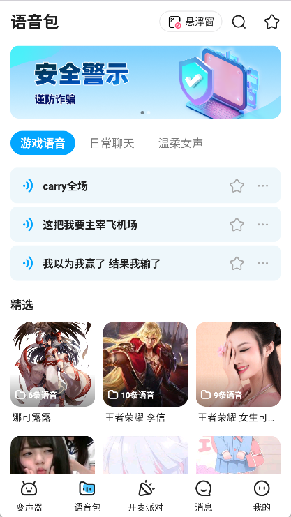 实时聊天变声:具备悬浮窗变声功能,能够在其他应用中实时使用。