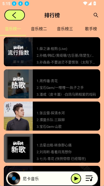 您可以任选一个栏目,就能看到应用为您推荐的最新且最热门的歌单。