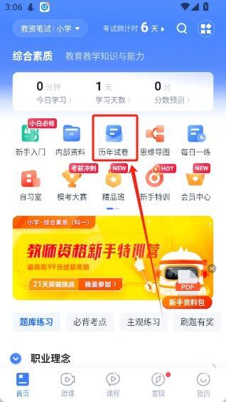 进入首页选择“历年试卷”