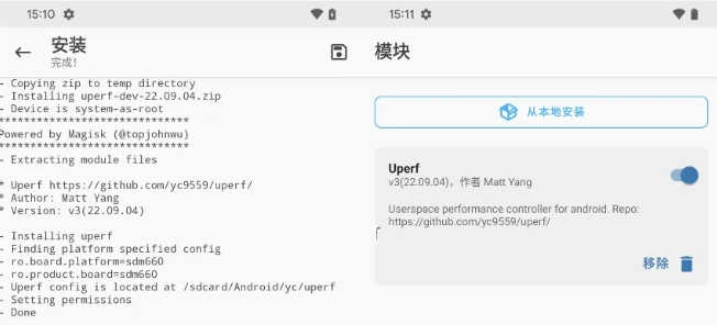 在Magisk框架里装上这个YC调度模块,接着重启手机就可以了。