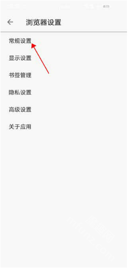 在浏览器设置窗口中,选择“常规设置”。
