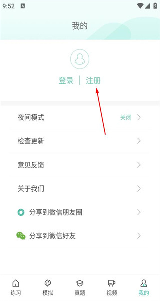 进入我的页面,找到注册选项,点击该选项,进入用户注册对应的操作页面。