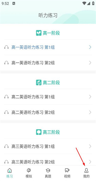 打开软件后,先查看各阶段的听力练习组,接着点击底部的“我的”选项,就能进入个人相关页面了。