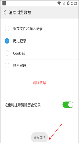 上拉页面至底部后点击【清除浏览数据】选项。