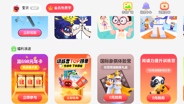 有道卡搭是专注于素质启蒙的教育平台,平台上汇聚了众多精心打造的王牌内容,涵盖围棋、国际象棋、编程、乐高、科学、美术等多个领域。要是您家中有适龄的孩子,不妨让他们通过有道卡搭进行学习——这里的课程既有趣味性又富有创造性,还有海量互动视频与有声故事,能让孩子沉浸其中,尽情享受学习的乐趣!