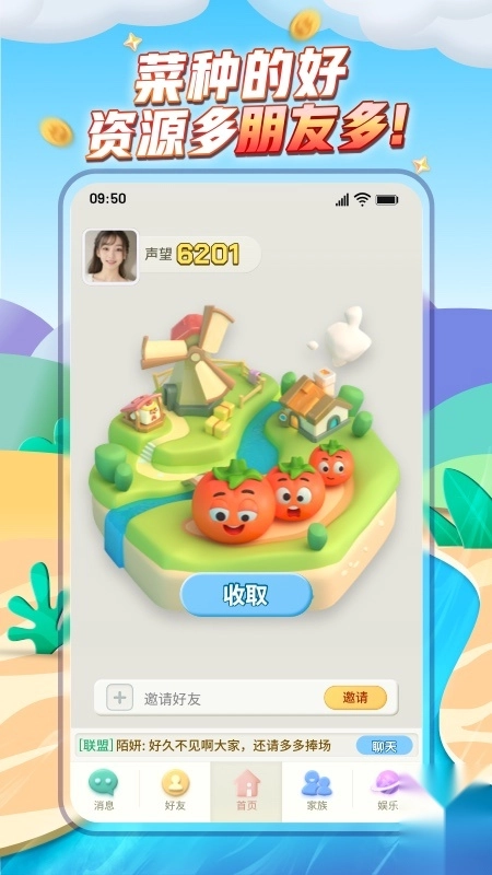 家园种菜:派派带来了游戏互动玩法,开启聊天家族全新体验。