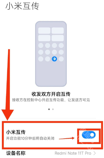 同时开启小米互传功能,在需要发送文件的手机端点击“我要发送”按钮。