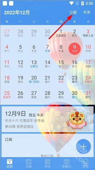 点击日历版块右上角订阅;