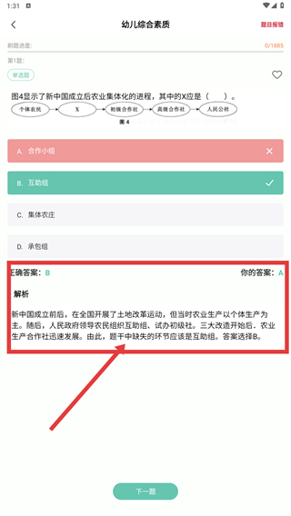 在答题页面,挑选选项完成作答,提交之后就能查看正确答案和解析,进而知晓题目的考查要点。