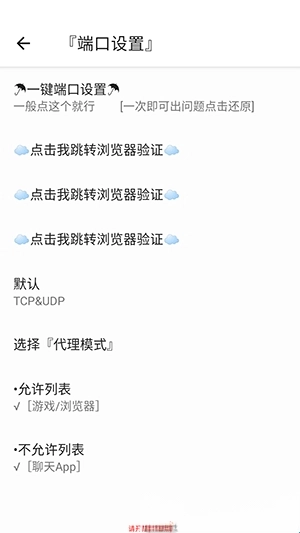 3. 进入端口设置环节,首先使用“一键端口设置”功能,随后按照系统给出的提示进行浏览器验证。