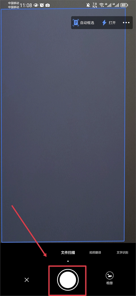 进入后将相机对准文件后,点击白色拍照按钮