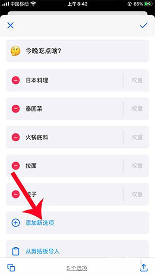 在新选项中输入需要添加的内容,输入完成后点击对勾按钮,接着观看五秒视频,最后点击X号即可退出。