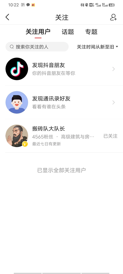 输入关键字,选定用户,接着向下滑动,选择你希望关注的用户。
