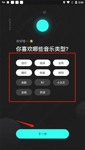 波点音乐安装完成后,第一次使用时,系统会先询问你偏好的音乐类型。