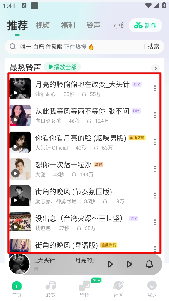 当下热门的铃声资源每日更新频次超1000次,单首歌曲平均更新达100次,以此保证资源始终具备时效性与新鲜感。