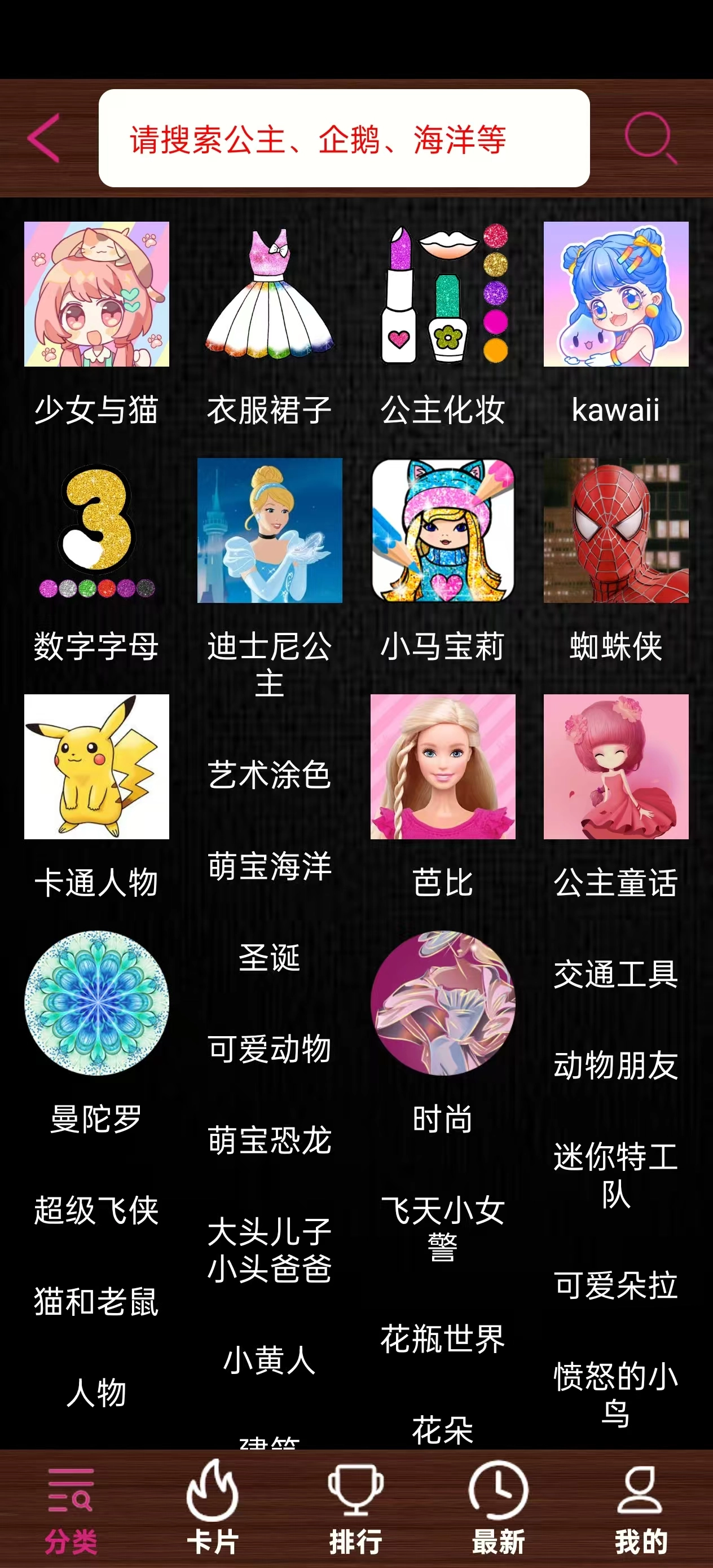 炫酷涂色,涂色卡片包括公主、动物、交通工具、超级飞侠等各种内容,有油漆桶、纹理笔可选择,孩子们可以尽情涂色后参加比赛