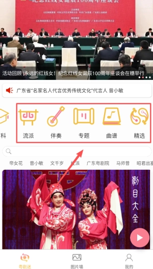 在首页,借助分类功能,用户可以查找热门粤剧唱段与经典剧目,迅速找到自己感兴趣的粤剧作品,提高观影效率。