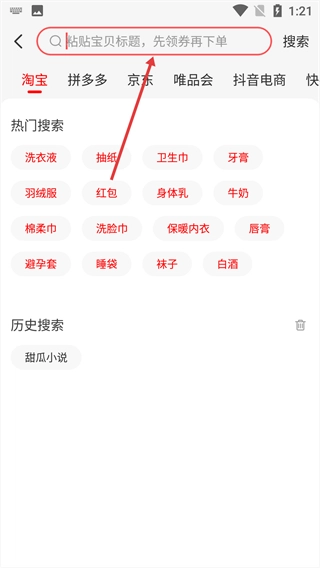 在搜索框中,输入想要搜索的商品名称。