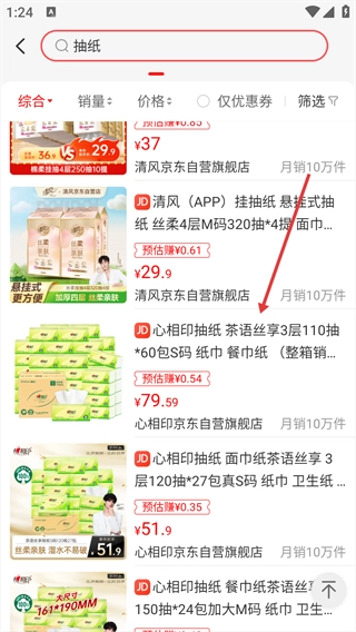进入搜索结果页,选定目标商品。