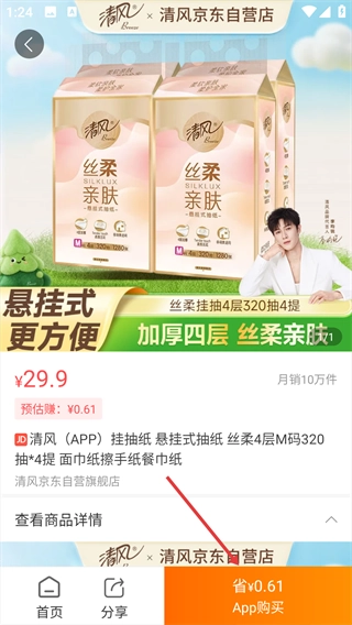在商品详情页面,核实价格为【29.9】后,点击页面底部的【App购买】按钮来启动购买流程。