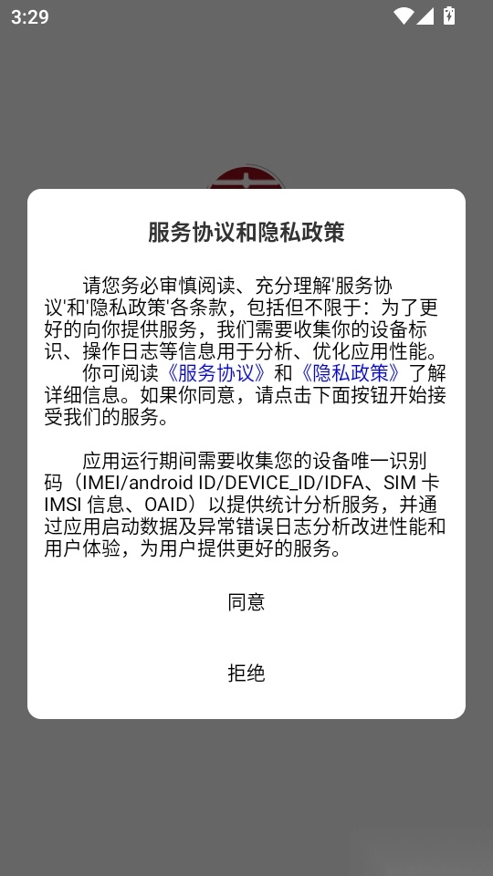 首先打开软件,阅读协议与隐私政策后,点击“同意”按钮即可进入。