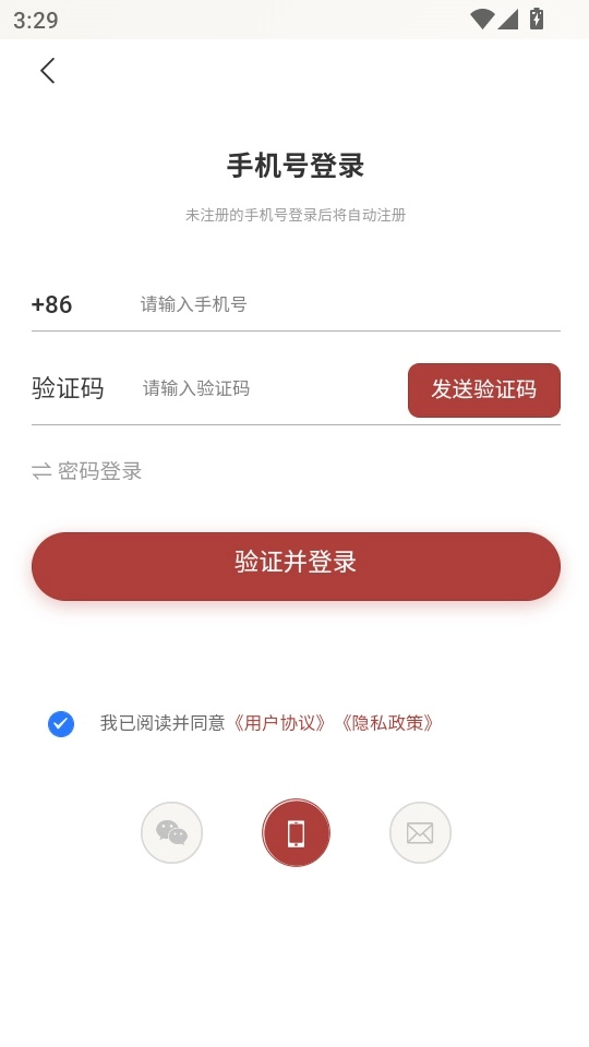 在“手机号登录”界面输入手机号和验证码,随后点击“验证并登录”按钮即可进入程序。