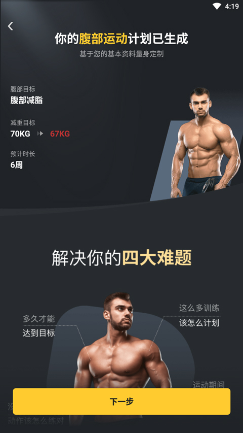1、开启腹肌撕裂者应用时,用户需要先填写个人身体信息,随后系统会依据这些资料为用户量身定制专属的腹部运动计划;