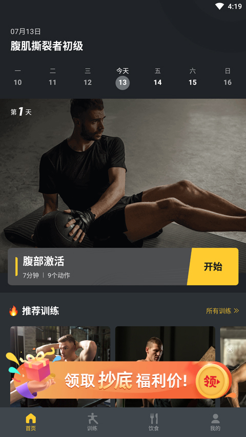 5、此外,应用也配备了科学合理的饮食规划方案,能辅助你更高效地开展训练活动。
