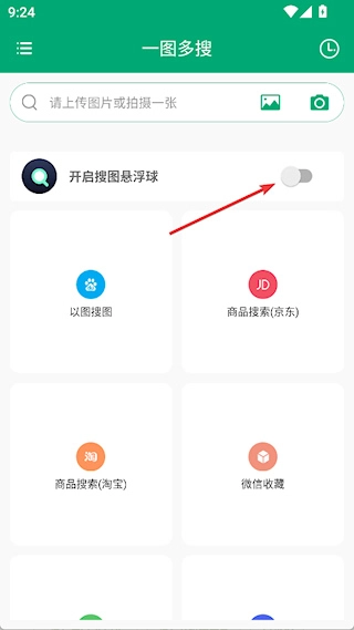 3、最后回到一图多搜功能里重新开启搜图悬浮球,此时悬浮球就会出现在屏幕边缘了