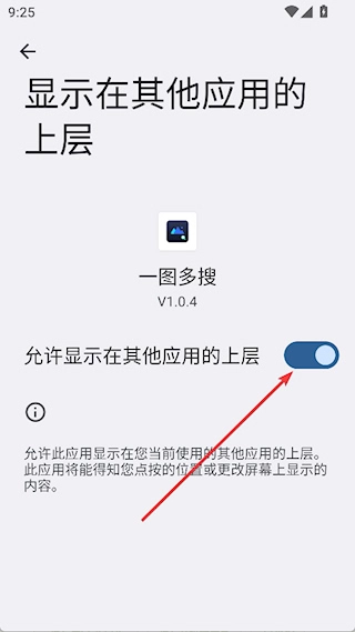 2、在列表中点击“一图多搜”,并允许其显示在其他应用的上层