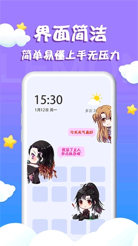 1、提供了大量的动漫人物和萌趣小动物,用户可以根据自己的喜好选择并设置在桌面上。