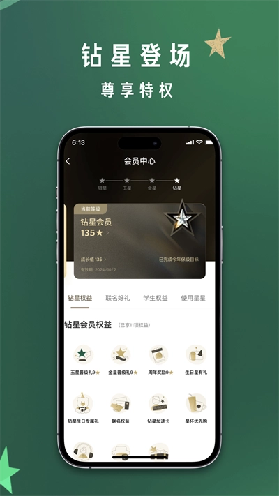 2、会员积分体系:会员每完成一笔消费都能累积星星,这些星星可用于兑换免费饮品以及专属礼品。