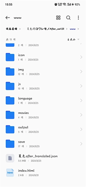 3、接下来找到翻译文件,把它复制或移动到游戏文件夹里的WWW文件夹中就可以了。