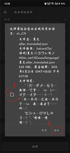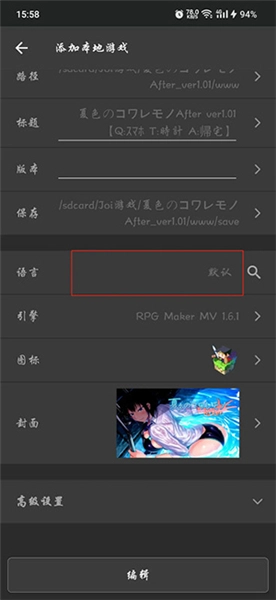 7、通常情况下这个阶段应该已经加载完成,但有时语言选择框里未必选中了对应的翻译语言。这时你可以点击图中标记的区域,在弹出的窗口里找到并选择刚才添加的翻译文件,最后点击底部的“编辑”按钮退出就可以了。