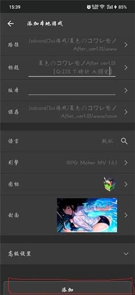 2、之后在弹窗的界面中添加游戏文件。