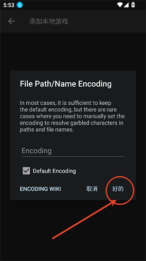 5、完成选择后会回到最初添加游戏时的界面,接着点击语言栏最右侧带有查找标识的图标。随后会弹出语言选择弹窗,操作步骤如下:先点击左侧的方框进行选中,再点击右下角的“好的”按钮确认即可。