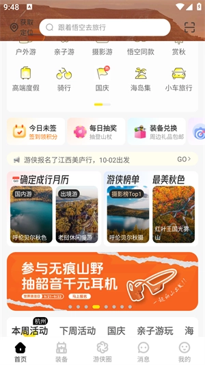 您可以随时随地方便预订周边短途游、专业摄影主题游、亲子互动游、自驾自由行、户外探险游、城市商务会议以及专属定制游等各类出行及活动服务。