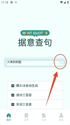 1、比如此刻我想查找王维的《使至塞上》,却只记得其中的“大漠孤烟直”这句诗,这时我们就可以直接在搜索框里输入“大漠孤烟直”来进行搜索查找。