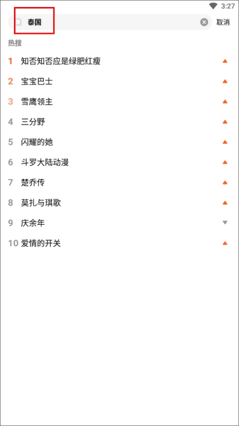2、在搜索栏输入“泰国”;